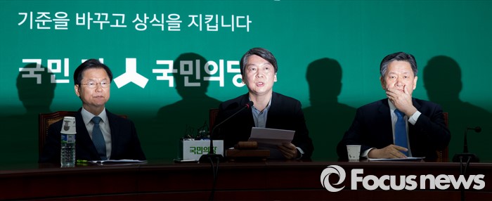 (서울=포커스뉴스) 안철수(가운데) 국민의당 상임공동대표가 25일 오전 서울 여의도 국회에서 최고위원회의에 참석해 모두발언을 하고 있다. 왼쪽부터 천정배 국민의당 공동대표, 안 대표, 주승용 원내대표.