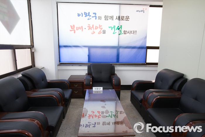 (부여=포커스뉴스) 29일 오후 이완구 전 국무총리가 2013년 재보궐 선거 때 사용한 충남 부여 선거사무소에서 서울고법 형사2부 관계자들이 현장검증을 실시된 가운데 선거사무소 사무실 모습이 보이고 있다.