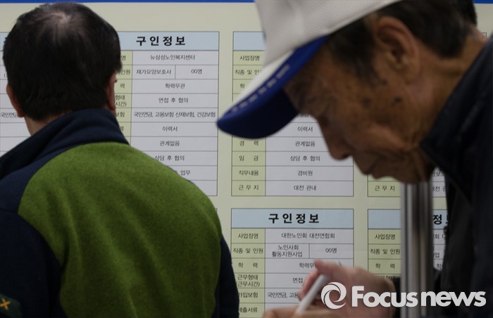 (대전=포커스뉴스) 28일 오후 대전 서구 노인복지관 3층 대강당에서 열린 찾아가는 시니어 취업 박람회를 찾은 구직희망자가 이력서를 작성하고 있다.