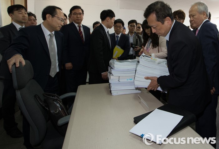 (부여=포커스뉴스) 29일 오후 이완구 전 국무총리가 2013년 재보궐 선거 때 사용한 충남 부여 선거사무소에서 서울고법 형사2부 관계자들이 현장검증을 실시하고 있다.