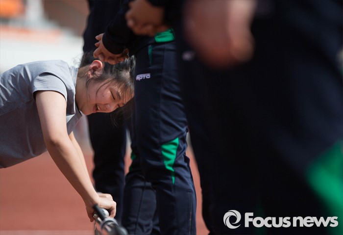 (서울=포커스뉴스) 28일 오후 서울 효창동 효창운동장에서 열린 학군단 57기 후보생 선발전형 체력검정에서 숙명여대 응시생들이 시험을치르고 있다.