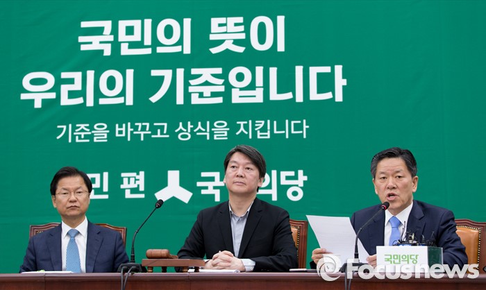 (서울=포커스뉴스) 주승용(오른쪽) 국민의당 원내대표가 25일 오전 서울 여의도 국회에서 최고위원회의에 참석해 모두발언을 하고 있다. 왼쪽부터 천정배 공동대표, 안철수 상임공동대표, 주 원내대표.