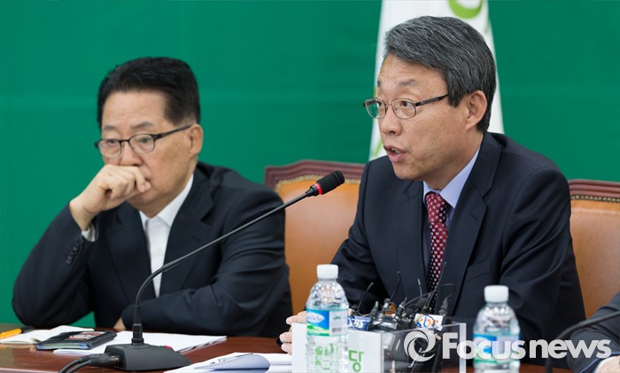 (서울=포커스뉴스) 김성식(오른쪽) 국민의당 정책위의장이 29일 오전 서울 여의도 국회에서 최고위원회의에 참석해 모두발언을 하고 있다.