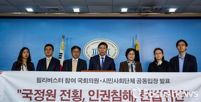 (서울=포커스뉴스) 이학영(가운데) 더불어민주당 의원이 2일 오전 서울 여의도 국회에서 테러방지법 시행 관련 기자회견을 하고 있다.