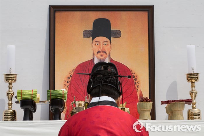 (서울=포커스뉴스) 28일 오전 서울 중구 남산골한옥마을에서 중구청 관계자들이 '충무공 탄생 471주년 기념 다례식'을 개최하고 있다.