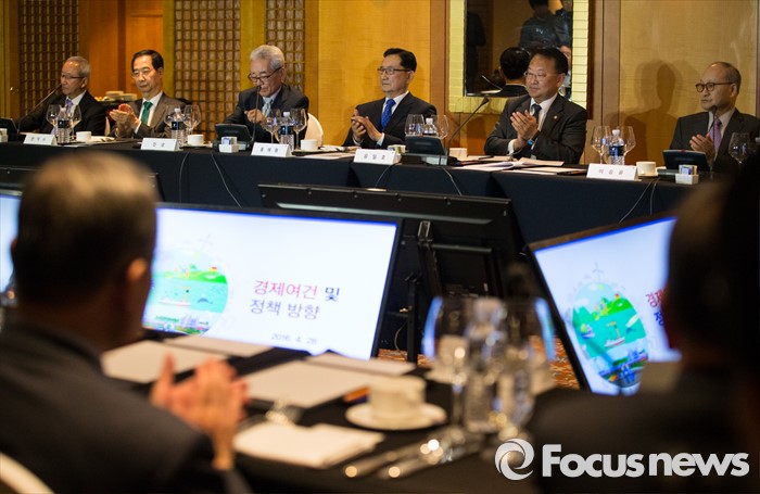 (서울=포커스뉴스) 유일호 경제부총리 겸 기획재정부 장관이 참석한 가운데 28일 오후 서울 서초구 JW메리어트호텔에서 역대 부총리 및 장관과의 만찬 간담회가 열리고 있다.