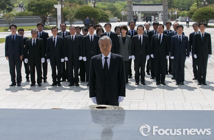 (광주=포커스뉴스) 김종인 더불어민주당 비대위 대표가 25일 오전 광주 북구 국립 5·18민주묘지를 방문해 20대 총선 당선인 및 광주·전남지역 낙선 인사들과 참배를 하고 있다.