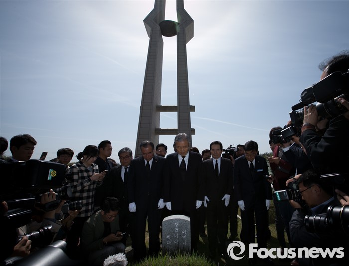 (광주=포커스뉴스) 김종인 더불어민주당 비대위 대표가 25일 오전 광주 북구 국립 5·18민주묘지를 방문해 20대 총선 당선인 및 광주·전남지역 낙선 인사들과 열사 묘역을 둘러보고 있다.