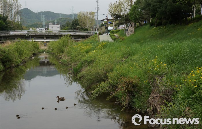 (과천=포커스뉴스) 만물이 소생하는 봄이다. 27일 경기도 과천 양재천에 청둥오리가 갓 부화한 새끼들을 데리고 봄나들이 나왔다. 천변엔 들꽃이 피어 있고, 물살이 약한 너른 개천은 오리 일가족이 나른한 봄날 오후를 즐기는 운동장이 되었다.