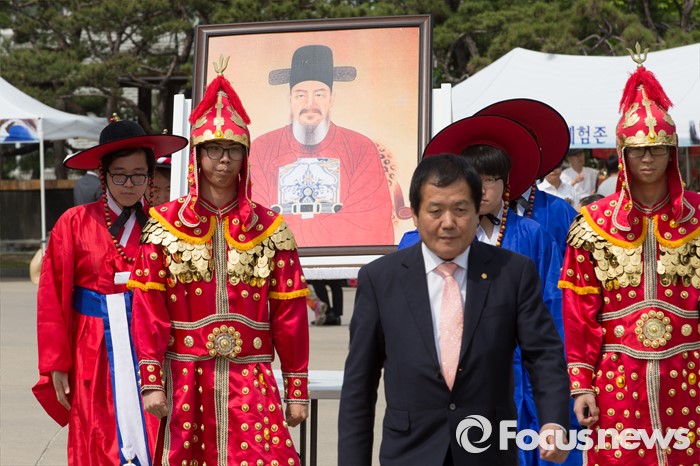 (서울=포커스뉴스) 28일 오전 서울 중구 남산골한옥마을에서 중구청 관계자들이 '충무공 탄생 471주년 기념 다례식'을 개최하고 있다.