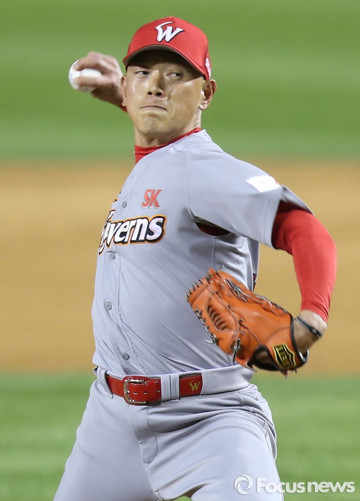 (서울=포커스뉴스) 27일 서울 잠실구장에서 열린 2016 프로야구 SK-두산 경기에서 SK 투수 박정배가 8회 2사 1,3루에서 마운드에 올라 투구하고 있다.