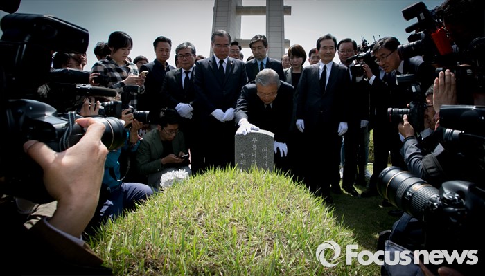 (광주=포커스뉴스) 김종인 더불어민주당 비대위 대표가 25일 오전 광주 북구 국립 5·18민주묘지를 방문해 20대 총선 당선인 및 광주·전남지역 낙선 인사들과 열사 묘역을 둘러보고 있다.