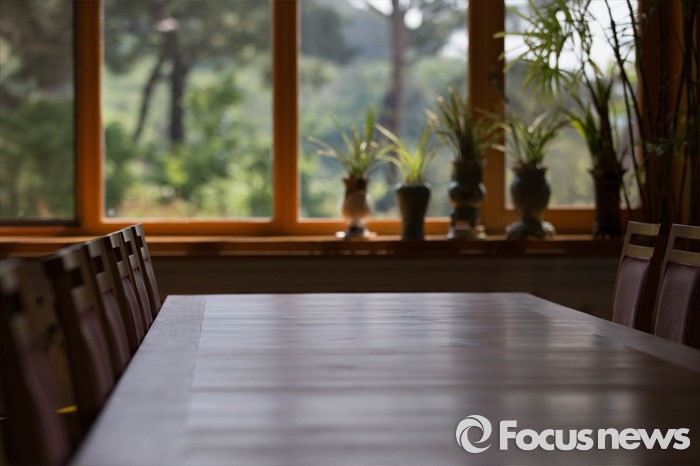 (김해=포커스뉴스) 고 노무현 전 대통령 서거 7주기를 앞두고 1일 오전 노 전 대통령의 사저가 공개되고 있다. 손님을 맞이하던 사랑채 창문너머로 봉화산이 보이고 있다.