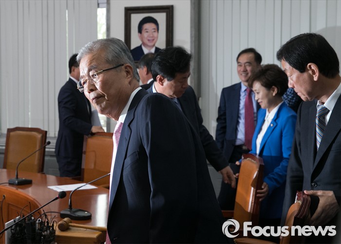 (서울=포커스뉴스) 김종인(왼쪽) 더불어민주당 비대위 대표 등 비대위원들이 27일 오전 서울 여의도 국회에서 비상대책위원회의를 마친 뒤 퇴장하고 있다.