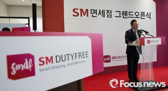 (서울=포커스뉴스) 29일 오전 서울 종로구 SM면세점 서울점에서 열린 그랜드 오픈식에 참석한 권희석 SM면세점 대표이사가 인사말을 하고 있다.