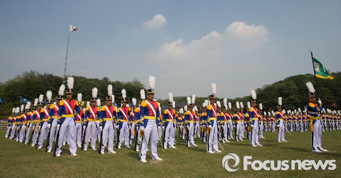 (서울=포커스뉴스) 29일 오후 서울 노원구 육군사관학교에서 열린 개교 70주년 기념식에서 생도들이 도열하고 있다.