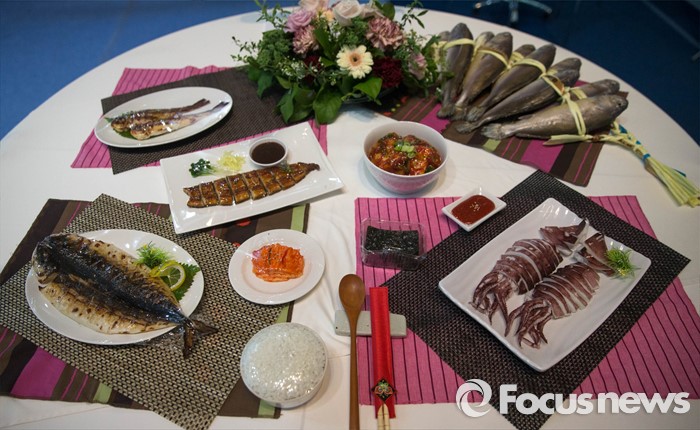 (서울=포커스뉴스) 28일 오전 서울 삼성동 코엑스에서 열린 2016 귀어귀촌 박람회장에서 한 참가 부스가 해산물 밥상을 전시해놓고 있다.