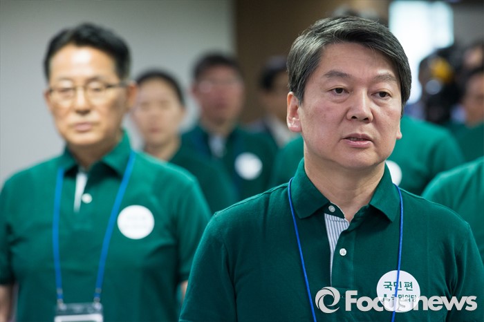 | △ 애국가 제창하는 안철수, 박지원 |