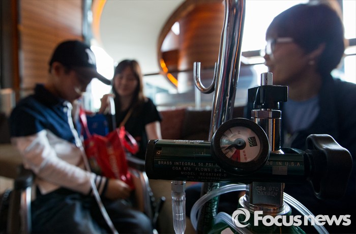 (서울=포커스뉴스) 2일 오전 서울 영등포구 콘래드호텔에서 열린 '옥시레킷벤키저(현 RB코리아) 가습기 살균제 파동' 관련 기자회견장 앞에서 가습기 살균제 피해자 임성준 군이 가족 및 지인과 대화하고 있다.