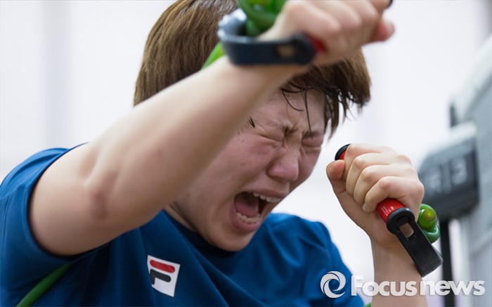 (서울=포커스뉴스) 제31회 리우하계올림픽대회를 100일 앞둔 27일 오후 서울 노원구 태릉선수촌에서 여자 킥복싱 국가대표 선수들이 훈련을 하고 있다.
