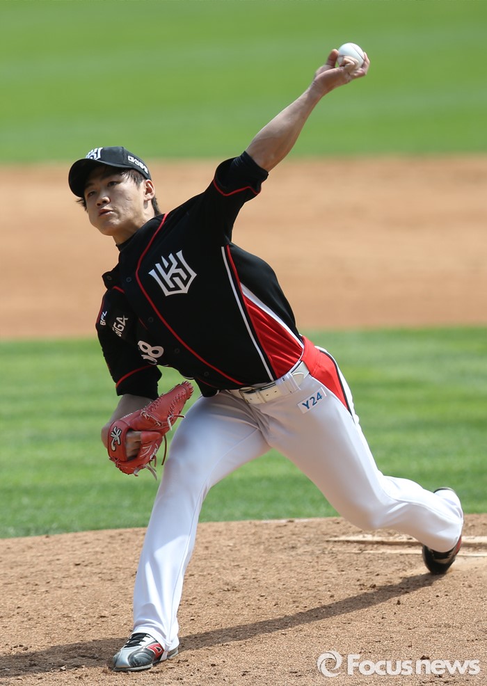 (서울=포커스뉴스) 1일 서울 잠실구장에서 열린 2016 프로야구 kt-LG 경기에서 1회말 kt 선발투수 정성곤이 투구하고 있다.
