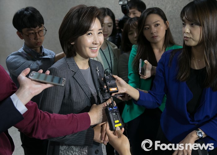 | △ 취재진 앞에 선 나경원 |