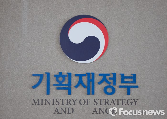 (세종=포커스뉴스) 25일 오전 세종시 정부세종청사 기획재정부 입구에기획재정부 상징로고가 설치돼 있다.