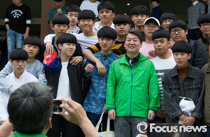 (양평=포커스뉴스) 국민의당 20대 총선 당선자 워크숍 이틀째인 27일 오전 경기도 양평 한화리조트에서 안철수 국민의당 상임공동대표가 학생들과 기념촬영을 하고 있다.