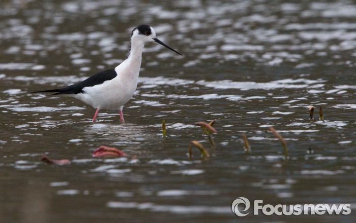 (시흥=포커스뉴스) 장다리물떼새가 25일 오전 경기도 시흥시 관곡지에서 작은 물고기를 잡아먹고 있다. 장다리물떼새는 일부가 한반도에서 번식한다