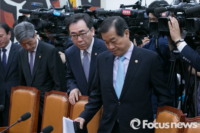 (서울=포커스뉴스) 황인무(오른쪽부터) 국방부 차관과, 조태열 외교부 제2차관, 황부기 통일부 차관이 28일 오전 서울 여의도 국회에서 열린 대북 관련 긴급 안보 대책회의에 참석하고 있다.