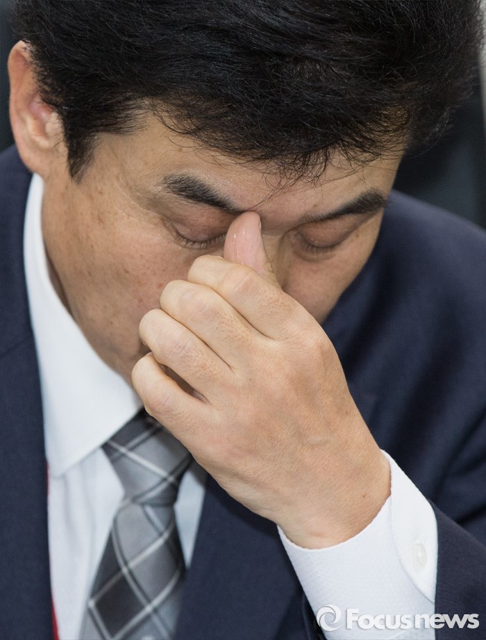 (세종=포커스뉴스) 정세화 한진해운신항만 사장이 25일 오후 세종시 정부세종청사 해양수산부 중회의실에서 열린 해운시장 및 해운동맹 재편 관련 대책회의에 참석해 잠시 얼굴을 만지며 생각에 잠긴 모습을 보이고 있다.