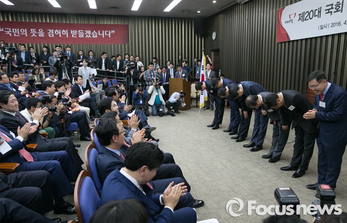 (서울=포커스뉴스) 26일 오전 서울 여의도 국회에서 열린 새누리당 20대 총선 당선자 워크숍에 참석한 대구지역 당선인들이 인사하고 있다.