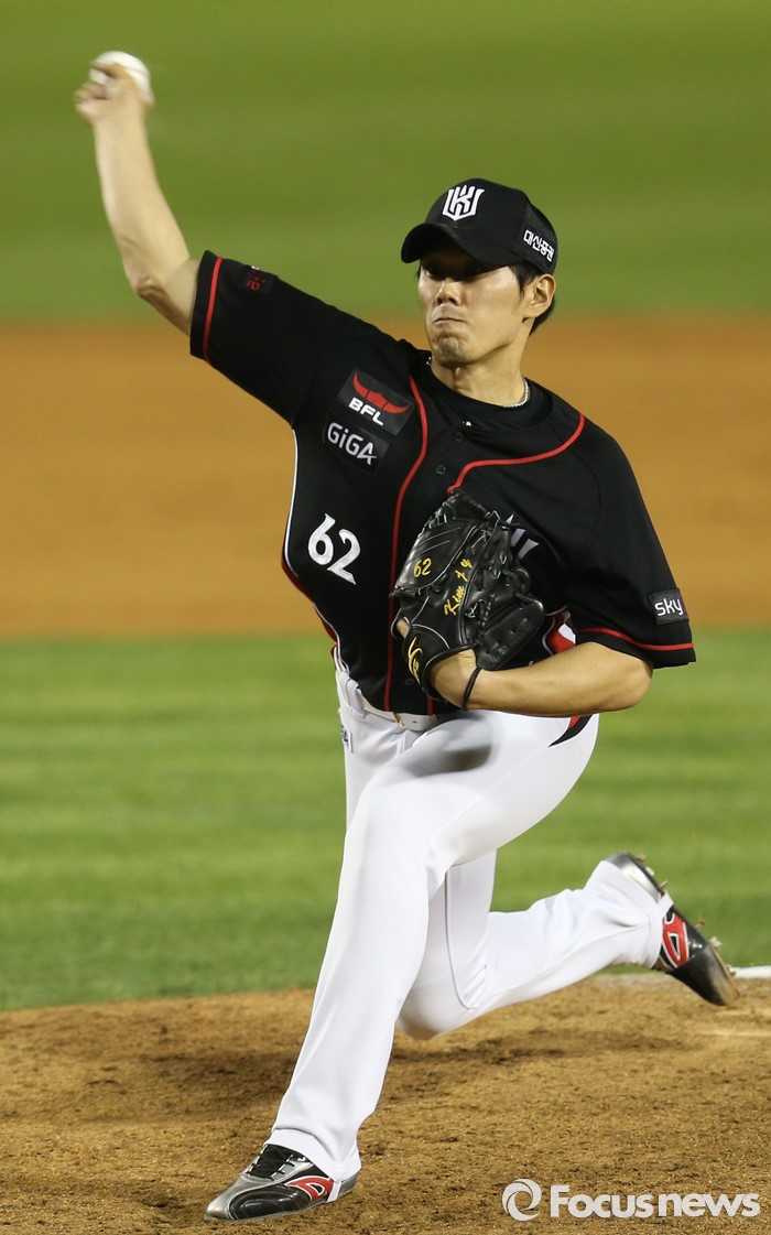 (서울=포커스뉴스) 29일 서울 잠실구장에서 열린 2016 프로야구 kt-LG 경기에서 kt 투수 김재윤이 8회말에 투구하고 있다.
