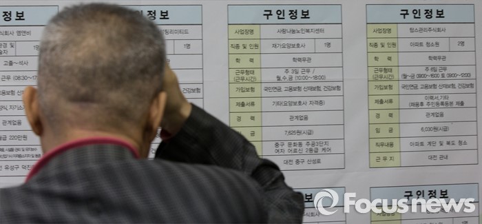 (대전=포커스뉴스) 28일 오후 대전 서구 노인복지관 3층 대강당에서 열린 찾아가는 시니어 취업 박람회를 찾은 구직희망자가 구인광고를 살피고 있다.