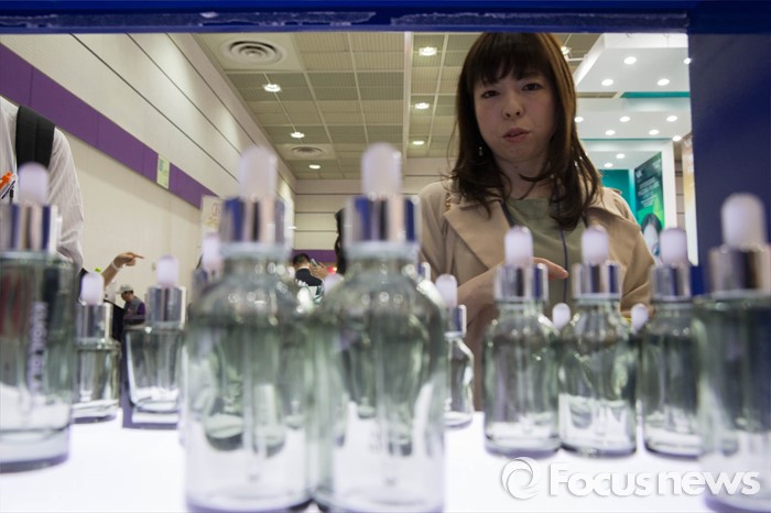 (서울=포커스뉴스) 28일 오전 서울 삼성동 코엑스에서 열린 2016 국제건강산업박람회에서 한 중국 관광객이 부스에 마련된 제품을 살펴보고 있다.