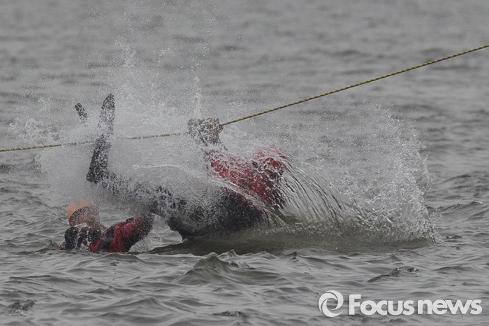 (서울=포커스뉴스) 27일 오전 서울 영등포구 여의도 한강공원 원효대교 일대에서 열린 '수도 서울 민․관․군 합동 대규모 복합재난 가상훈련'에 참가한 구조대원들이 레펠을 이용해 입수하고 있다.
