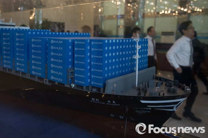 (서울=포커스뉴스) 제1호 해운사인 한진해운이 심각한 경영난으로 재무구조 개선 및 경영정상화를 위해 채권단에 자율협약을 신청한 27일 오전 서울 영등포구 한진해운 본사 로비에 직원들이 지나가고 있다.