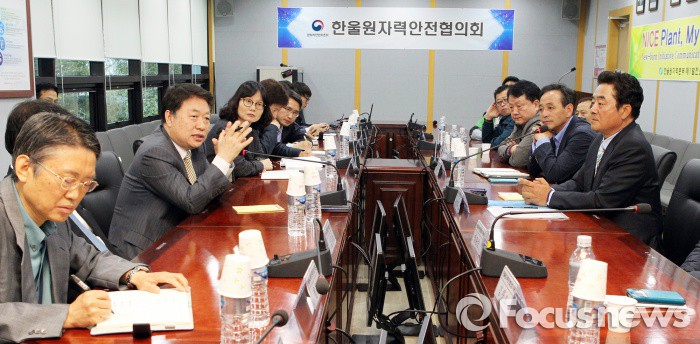(서울=포커스뉴스) 김용환 원자력안전위원회 위원장이 27일 한울원자력본부 제1발전소 회의실에서 한울원자력안전협의회 위원들과 간담회를 나누고 있다. 김 위원장은 지난 15일 취임해 고리원자력안전협의회를 시작으로 지역주민과의 소통을 강조하며 각 지역 원자력안전협의회 위원들과 소통 행보를 이어갔다. <사진제공=원자력안전위원회>
