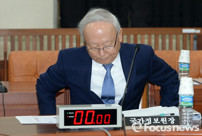 (서울=포커스뉴스) 이병호 국정원장이 27일 오후 서울 여의도 국회에서 열린 정보위원회 간담회에 출석해 자리에 앉고 있다. 이날 국회 정보위 간담회에서는 북한의 제5차 핵실험 가능성과 잠수함 탄도미사일 실험 등 대북 현안에 대해 논의한다.