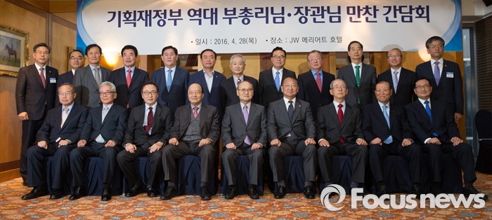 28일 서울 서초구 JW메리어트호텔에서 역대 부총리·장관을 초청해 열린 만찬 간담회에서 유일호 경제부총리 겸 기획재정부장관은 "요즘같이 어려울 때 선배님들이라면 어떻게 하셨을까 생각하게 된다"며 조언을 요청했다.