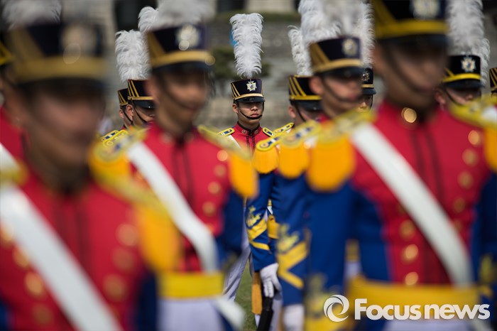 (서울=포커스뉴스) 29일 오후 서울 노원구 육군사관학교에서 열린 개교 70주년 기념식에서 생도들이 도열하고 있다.