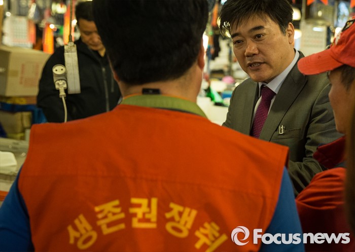 (서울=포커스뉴스) 27일 오전 서울 동작구 노량진 수산시장에서 한 상인이 공무원에게 점유이전금지가처분 집행에 대한 설명을 듣고 있다.