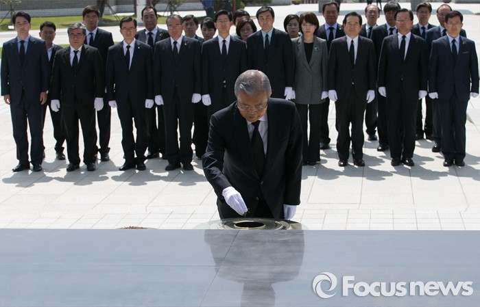 (광주=포커스뉴스) 김종인 더불어민주당 비대위 대표가 25일 오전 광주 북구 국립 5·18민주묘지를 방문해 20대 총선 당선인 및 광주·전남지역 낙선 인사들과 참배를 하고 있다.