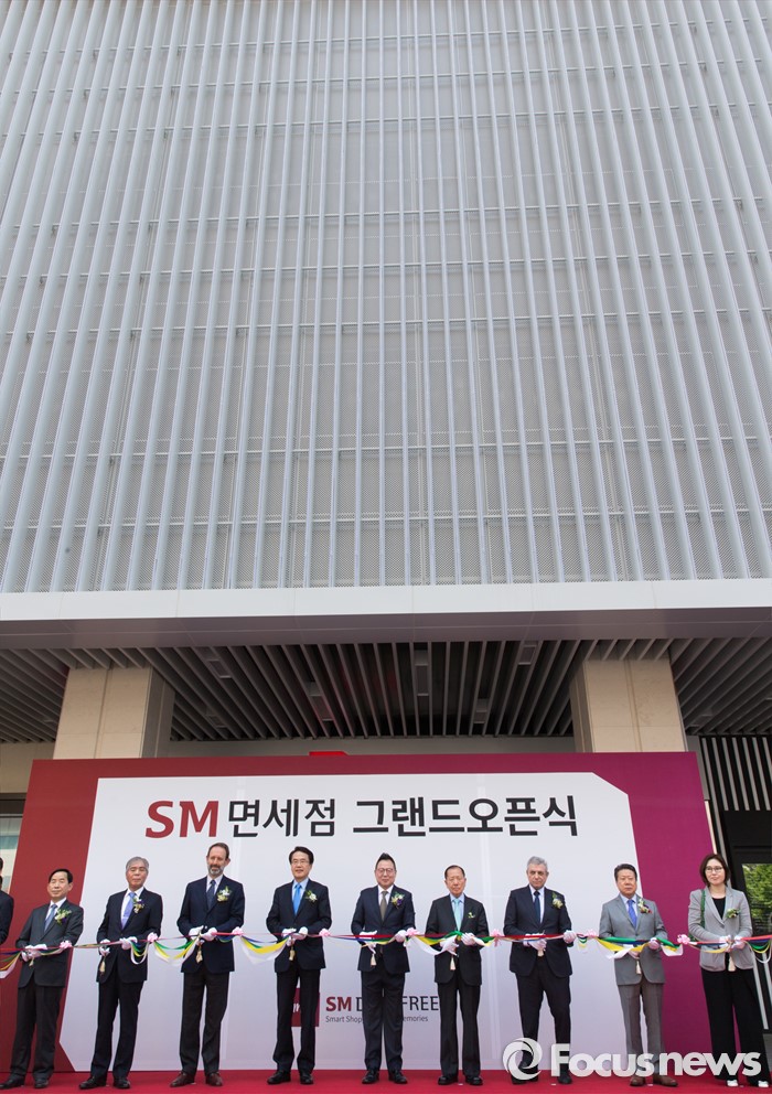 (서울=포커스뉴스) 29일 오전 서울 종로구 SM면세점 서울점에서 열린 그랜드 오픈식에 참석한 내빈들이 테이프 커팅을 하고 있다. 왼쪽부터 홍용술 중소기업유통센터 대표이사, 양무승 한국여행업협회 회장, 마르코 델라 세타 주한이탈리아대사, 박상환 하나투어 회장, 권희석 SM면세점 대표이사, 김동호 전 문화융성위원회 위원장, 다니엘 메이란 부루벨 코리아 사장, 김삼중 에스제이듀코 대표, 강명신 문화창조융합센터장.