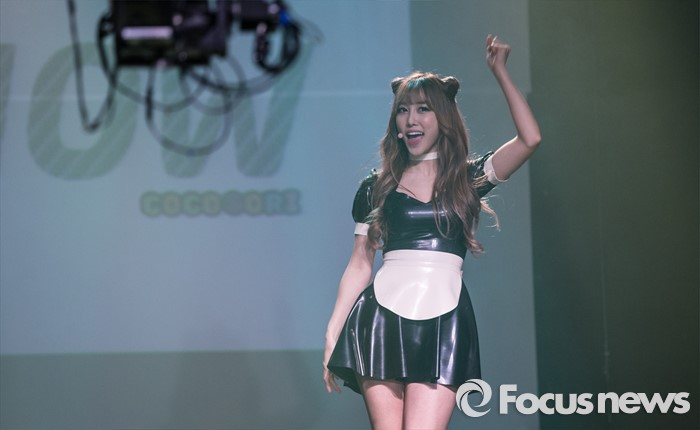 (서울=포커스뉴스) 26일 오후 서울 마포구 하나투어 브이홀에서 열린 여성듀오 코코소리의 싱글앨범 '절묘해' 발표 쇼케이스에 참석한 멤버 코코가 무대를 선보이고 있다.