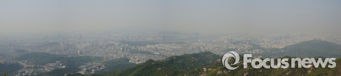 (서울=포커스뉴스) 25일 서울 시내에 미세먼지가 대기를 뒤덮었다. 관악산 연주대에서 바라본 서울 시내가 온통 희뿌연 미세먼지로 남산타워가 겨우 식별할 수 있을 정도로 보인다.