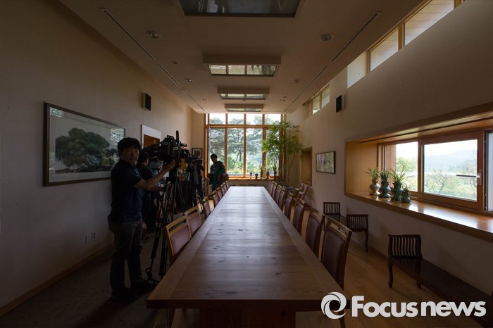 (김해=포커스뉴스) 고 노무현 전 대통령 서거 7주기를 앞두고 1일 오전 노 전 대통령의 사저가 공개되고 있다. 손님을 맞이하던 사랑채에 취재진들이 모여있다.
