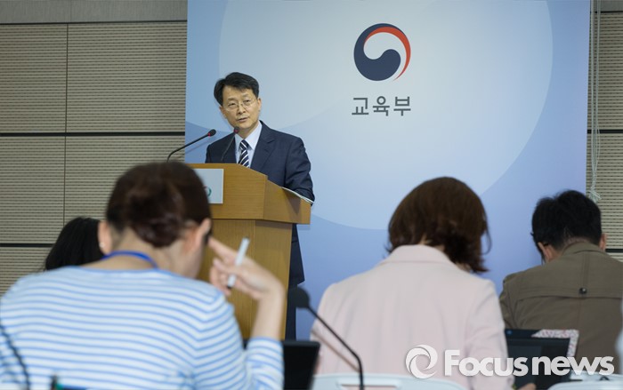 (세종=포커스뉴스) 이진석 교육부 학술장학지원관 2일 오전 세종시 정부세종청사 교육부 브리핑룸에서 법학전문대학원 입학실태조사 결과 발표를 하고 있다.