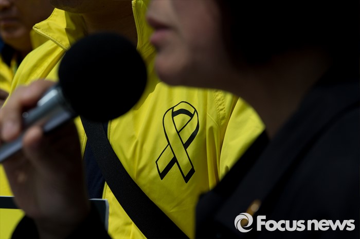 (서울=포커스뉴스) 25일 오전 서울 여의도 국회의사당 정문 앞에서 4월 16일의 약속국민연대 관계자들이 세월호 진상규명 특별법 개정 및 특검 실시 촉구 기자회견을 하고 있다.