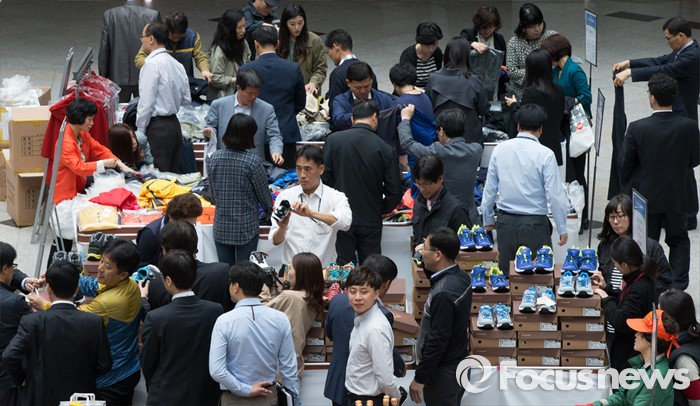 (대전=포커스뉴스) 28일 오전 정부대전청사 중앙홀에 마련된 개성공단 우수상품 특별판매전에서 공무원들이 제품을 살피고 있다. 개성공단 우수상품 특별판매전은 개성공단 입주기업 피해를 최소화 하기 위해 중소기업청이 주최했다.